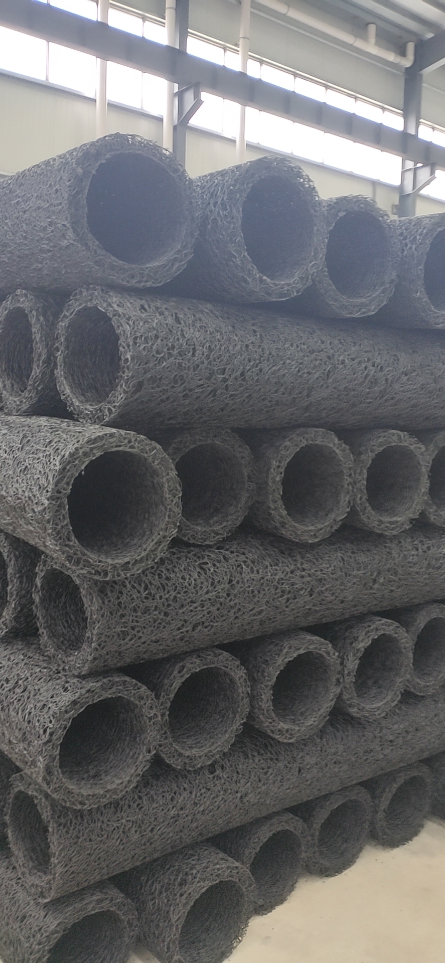 2、由于是立体结构,其空隙率为80-95%,构成空间与管理同且轻便,抗压性能比管结构的树脂强10倍以上,因此,即使因超负荷被压,但由于是立体结构,故残余空隙也达50baifenzhi以上,不存在不通水的问题,无需考虑会被土压力压坏。